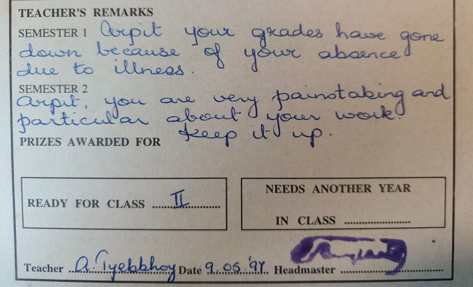 Funny that I happened to sift through my primary school report cards and came across this one where my first-grade teacher wrote, “Arpit, you are very painstaking and particular about your work. Keep it up.”